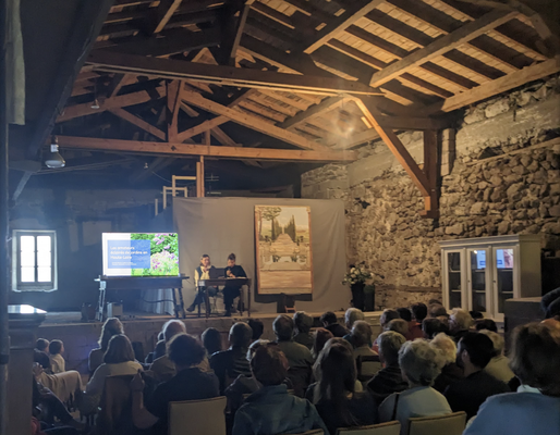 Au-delà de mes missions d’étude et de restauration, je m’attache à partager mes recherches et mon regard sur les jardins historiques. J’interviens ainsi dans le cadre de conférences scientifiques, auprès de publics avertis, comme à l’Académie des sciences ou à l’Institut européen des jardins et du paysage, où j’aborde les enjeux patrimoniaux et méthodologiques de mes projets. Ces interventions peuvent être données seule ou en binôme, favorisant un croisement de regards et de compétences. Parallèlement, j’anime des visites guidées et conférences grand public, en collaboration avec des associations telles que les Jardins fruités, Vieilles Maisons Françaises (VMF) ou la Demeure Historique (DH), afin de faire découvrir sur le terrain l’histoire, les usages et les secrets de ces jardins. Ces rencontres constituent pour moi autant d’occasions de transmettre, d’échanger et de sensibiliser à la richesse de ce patrimoine vivant.